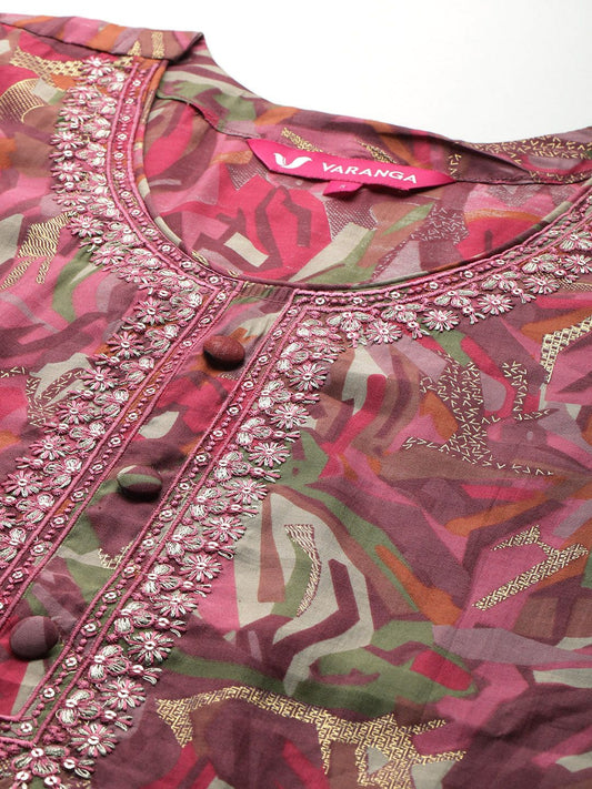 Buy 2 Get 1 FreeVendor:Dhiyona VADhiyona VA Women's Printed Pleated Thread Work Pure Cotton Kurta with Palazzos & With Dupatta