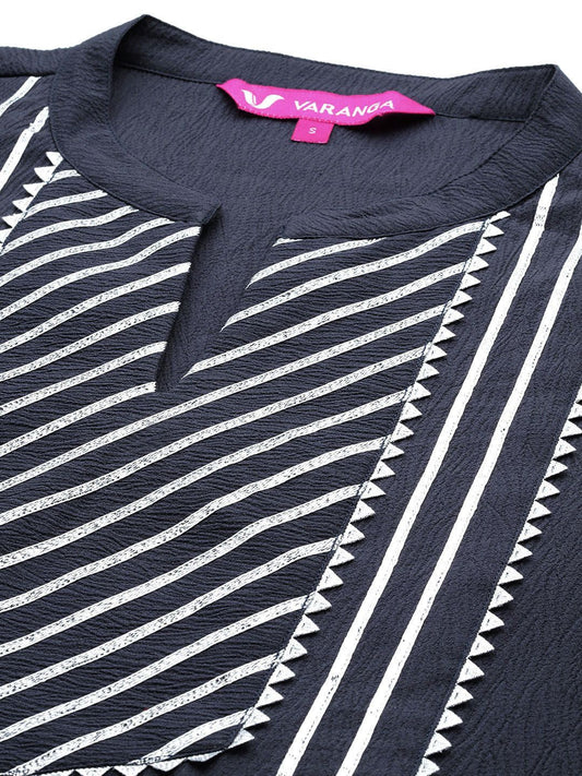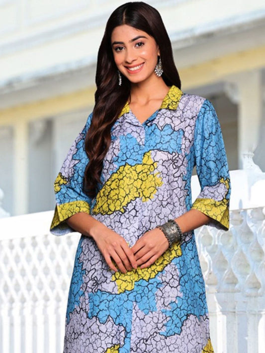 Buy 2 Get 1 FreeVendor:Dhiyona VADhiyona VA Women'sBlue Abstract Printed Cuban Collar Straight Kurta With Trousers