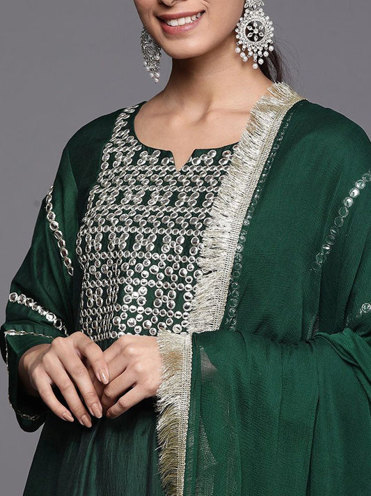 Dhiyona VA Women's Ethnic Motifs Embroidered Regular Gotta Patti Kurta with Trousers & With Dupatta