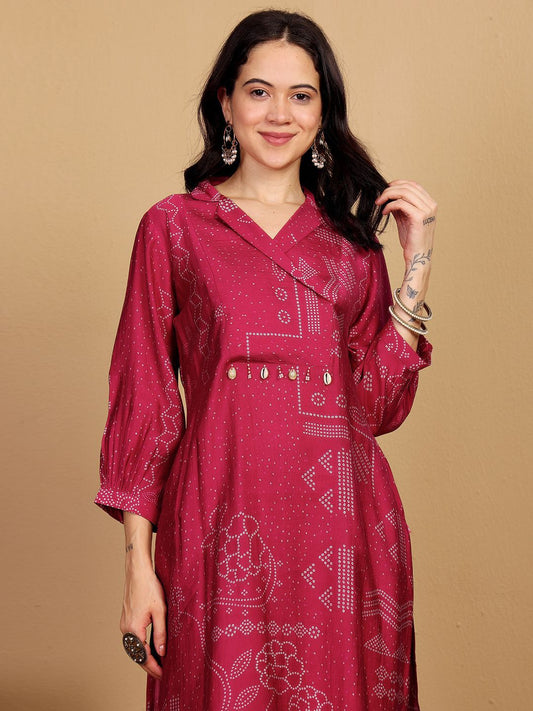 Dhiyona VA Women's Printed V-Neck Kurta with Trouser