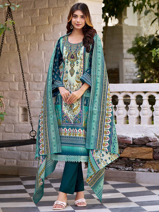 Dhiyona VA Women's Ethnic Motifs Embroidered Straight Kurta with Trousers & With Dupatta