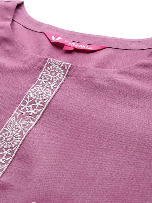 Dhiyona VA Women'sV Neck Ethnic Motifs Embroidered Regular Straight Kurta Set