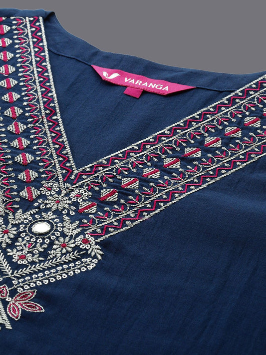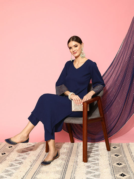 Dhiyona VA Women's Navy Blue Regular Gotta Patti Silk Crepe Kurta with Trousers & With Dupatta