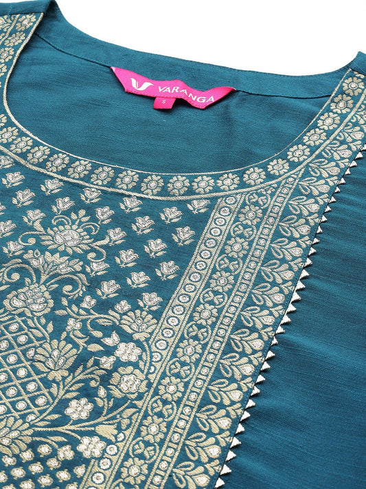 Dhiyona VA Women'sYoke Design Zari Round Neck Straight Kurta With Trousers & Dupatta