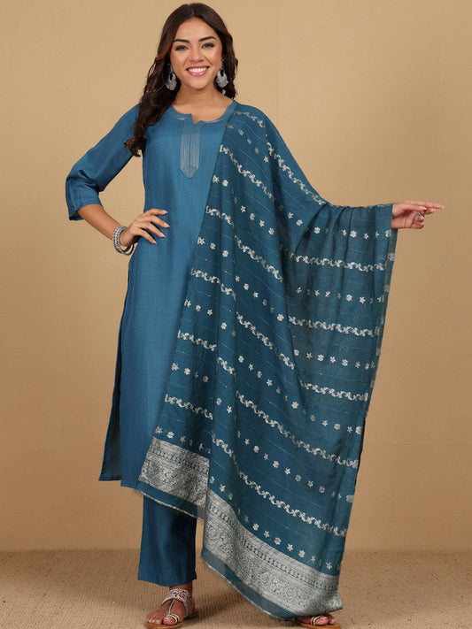 Buy 2 Get 1 FreeVendor:Dhiyona VADhiyona VA Women's Paisley Printed Woolen Kurta Paired with Trousers & Printed Dupatta