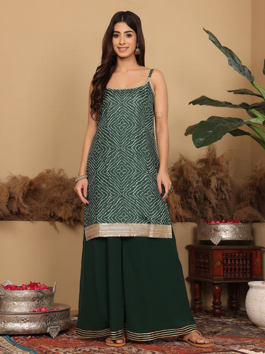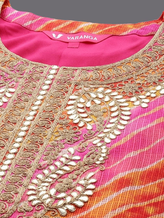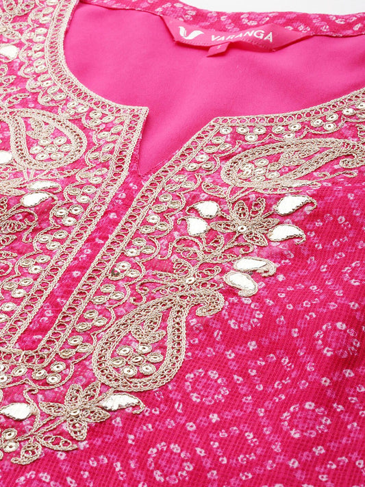 Dhiyona VA Women'sBandhani Gotta Patti Kurta with Sharara & Fringed Dupatta.