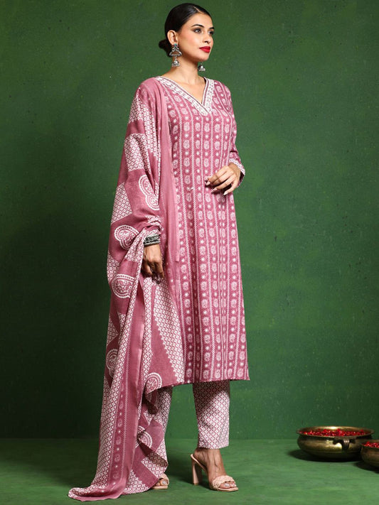 Buy 2 Get 1 FreeVendor:Dhiyona VADhiyona VA Women's Pink Printed Gotta Patti Pure Cotton Kurta with Trousers & Dupatta
