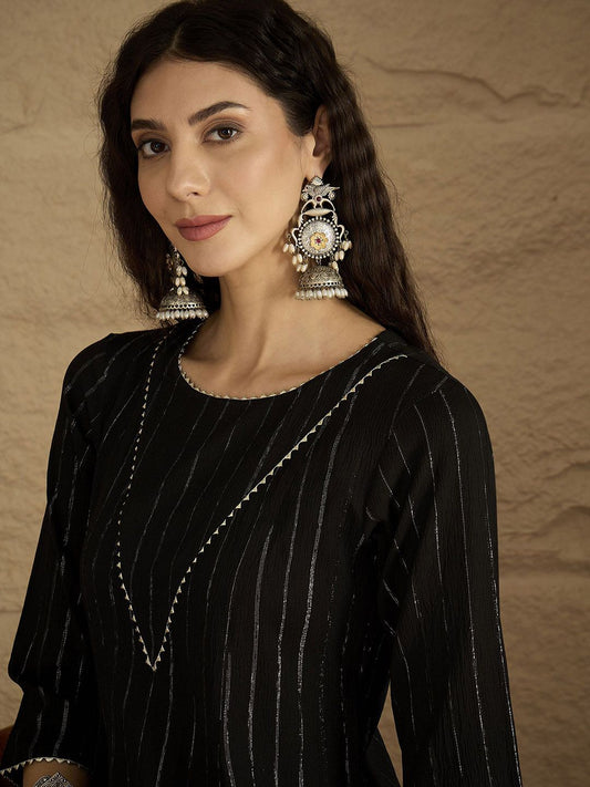 Dhiyona VA Women's Striped Round Neck Gotta Patti Silk Crepe Kurta with Trousers
