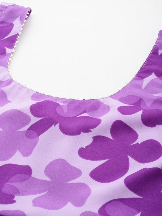 Buy 2 Get 1 FreeVendor:Dhiyona VADhiyona VA Women's Floral Printed Empire Silk Crepe Kurta with Trousers & Dupatta