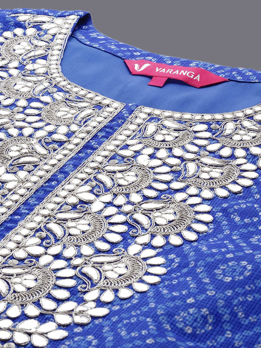 Buy 2 Get 1 FreeVendor:Dhiyona VADhiyona VA Women'sBandhani Printed Gotta Patti & Zari Embroidered Kurta & Trousers With Dupatta
