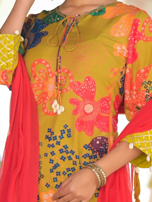 Dhiyona VA Women's Floral Printed Kurti with Sharara & Dupatta