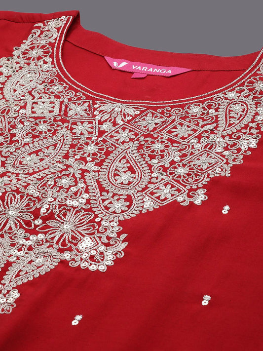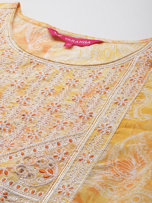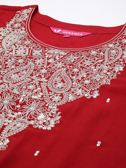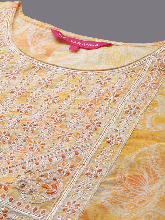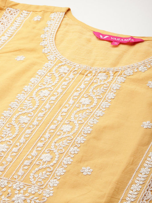 Dhiyona VA Women's Embroidered Sequinned Pure Cotton Kurta with Trousers & Dupatta