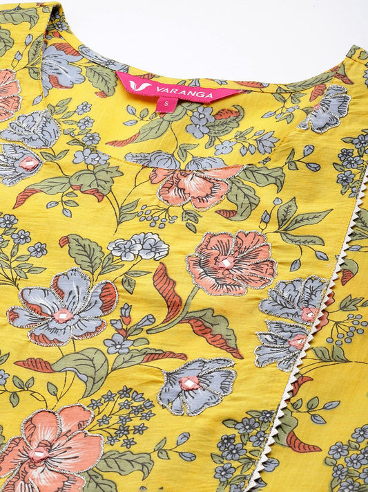 Dhiyona VA Women'sFloral Embroidered Sequinned A-Line Kurta with Trousers with Dupatta
