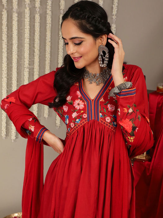 Dhiyona VA Women'sEthnic Motifs Embroidered Empire Anarkali Kurta with Trouser & Dupatta
