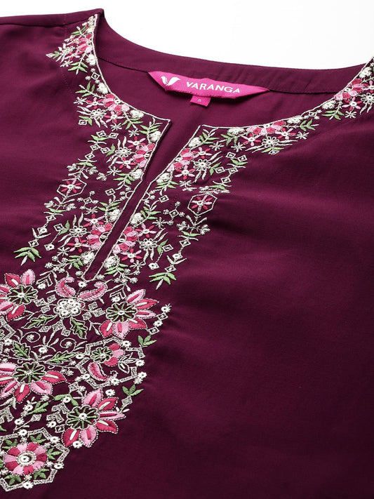 Dhiyona VA Women'sPurple Floral Embroidered Regular Sequinned Kurta With Trouser With Dupatta