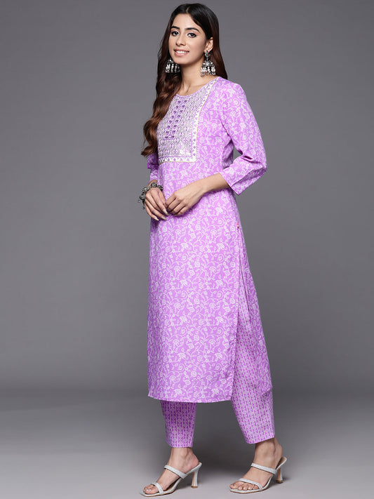 Dhiyona VR Women's Lavender Floral Printed Embroidered Kurta Paired With Bottom And Dupatta