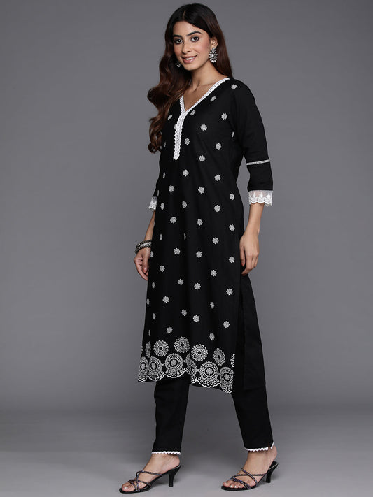 Buy 2 Get 1 FreeVendor:Dhiyona VRDhiyona VR Women's Black Thread Embroidered Straight Kurta With Bottom And Dupatta