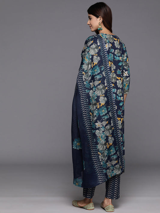 Dhiyona VR Women's Blue Floral Print And Embroidered Kurta With Bottom And Dupatta