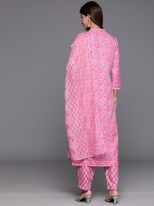 Dhiyona VR Women's Pink Floral Printed Kurta Paired With Bottom & Dupatta