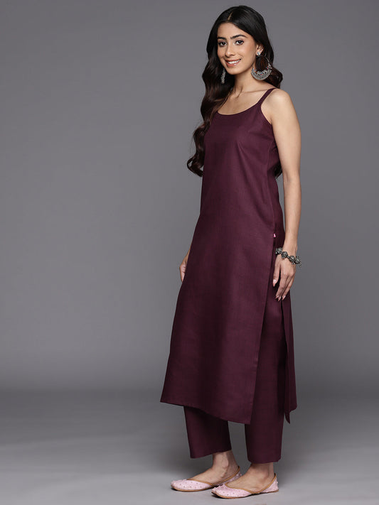 Dhiyona VR Women's Mauve Embroidered Kurta Paired With Tonal Trouser And Dupatta