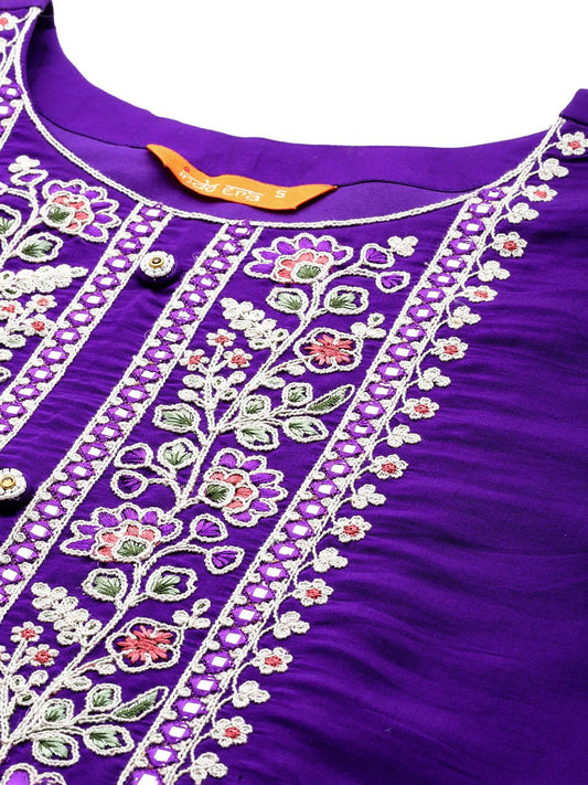 Dhiyona IE Mirror Work Embroidered Pleated Work Kurta with Trousers