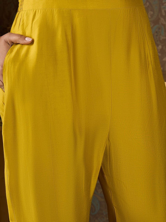 Dhiyona IE Women Ethnic Motifs Embroidered Regular Liva Kurta with Trousers & Dupatta