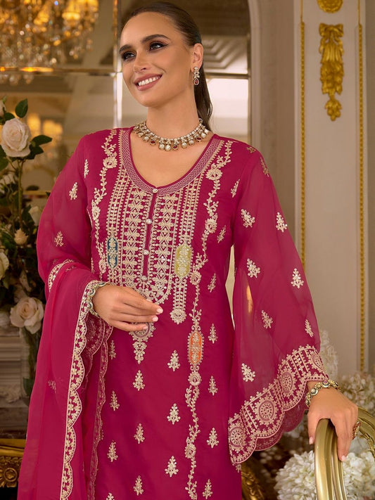 Dhiyona IE Floral Embroidered Thread Work Kurta With Trousers & Dupatta