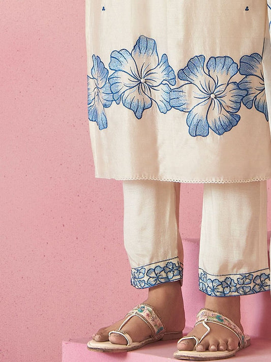 Dhiyona IE Floral Embroidered Thread Work Straight Kurta With Trouser & Dupatta