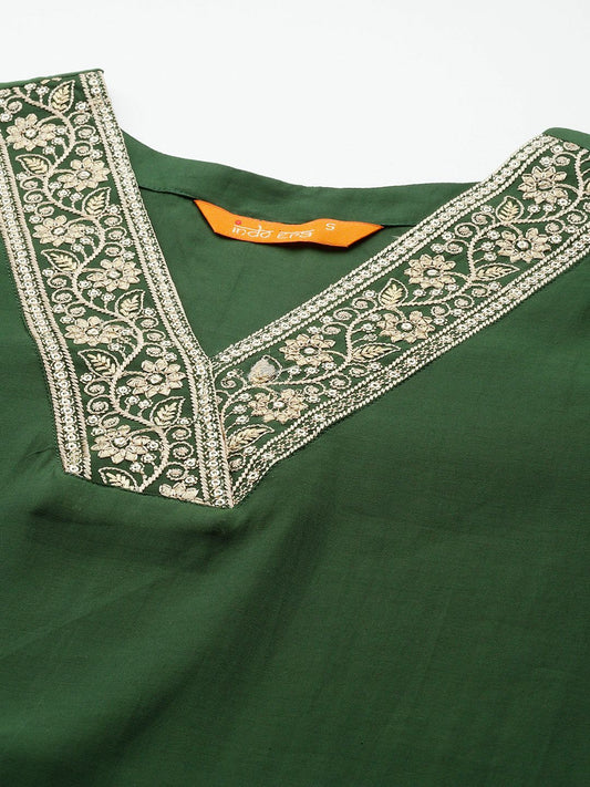 Dhiyona IE Sequinned Embroidered Round Neck Kurta With Trousers & Dupatta
