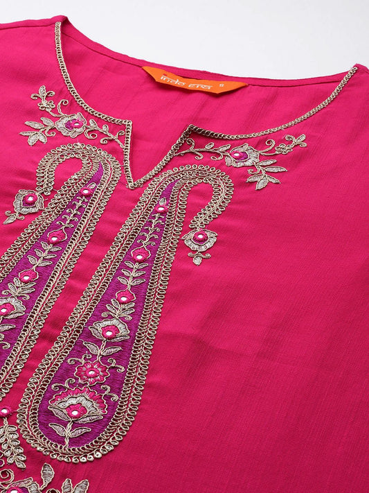 Dhiyona IE Women Ethnic Motifs Embroidered Regular Liva Kurta with Trousers & With Dupatta