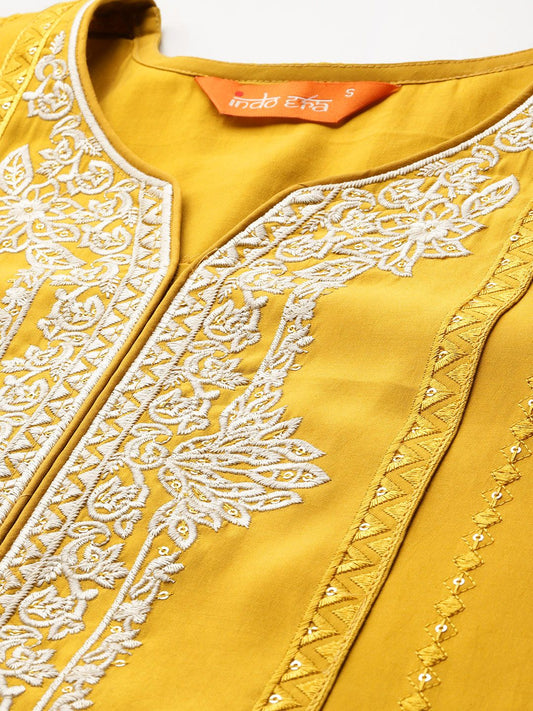 Dhiyona IE Ethnic Motifs Embroidered Thread Work Kurta with Palazzos & With Dupatta
