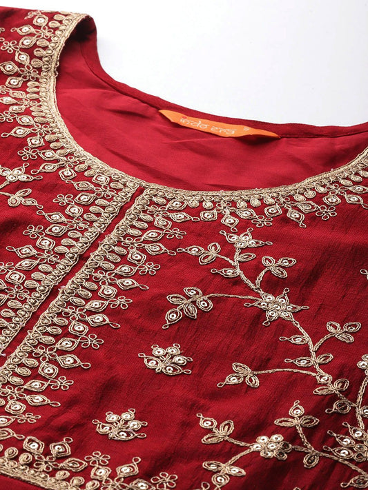 Dhiyona IE Ethnic Motifs Zari Embroidered Kurta With Trousers & Dupatta