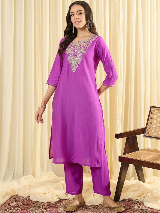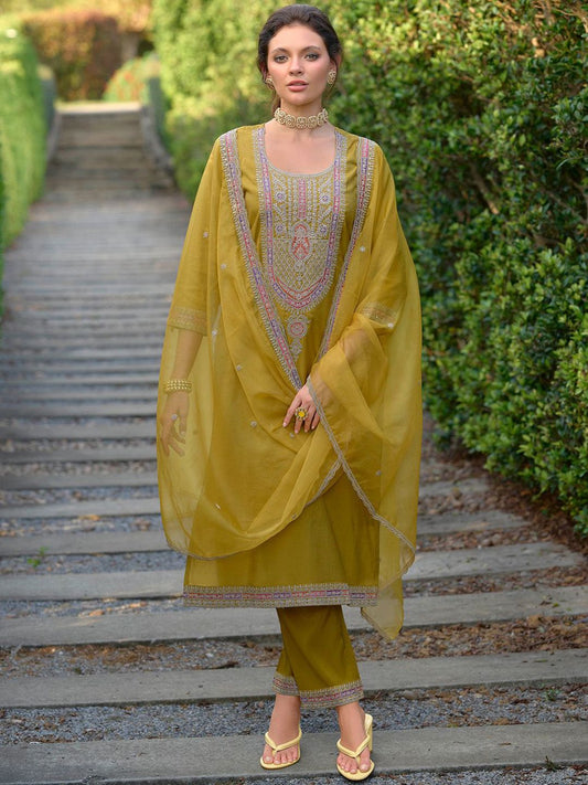 Dhiyona IE Ethnic Motifs Embroidered Straight Kurta with Trousers & Dupatta