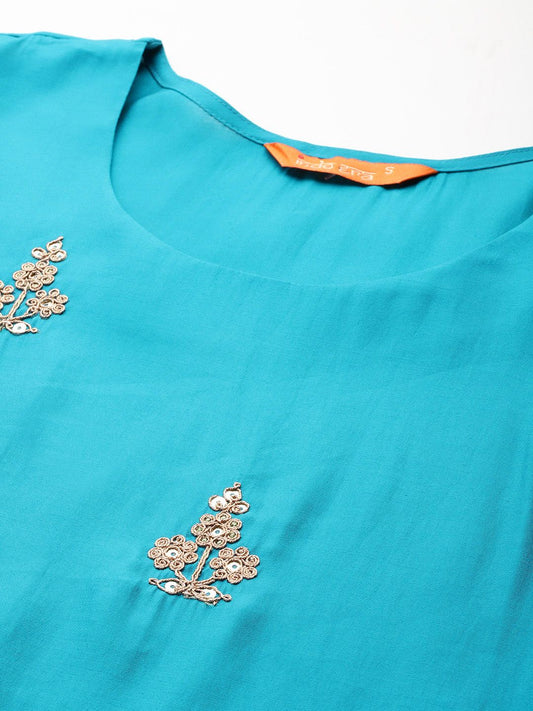 Dhiyona IE Embroidered Gotta Patti Work Round Neck Kurta With Trousers & Dupatta