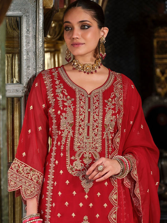 Dhiyona IE Ethnic Motifs Embroidered Kurta with Palazzos & Dupatta