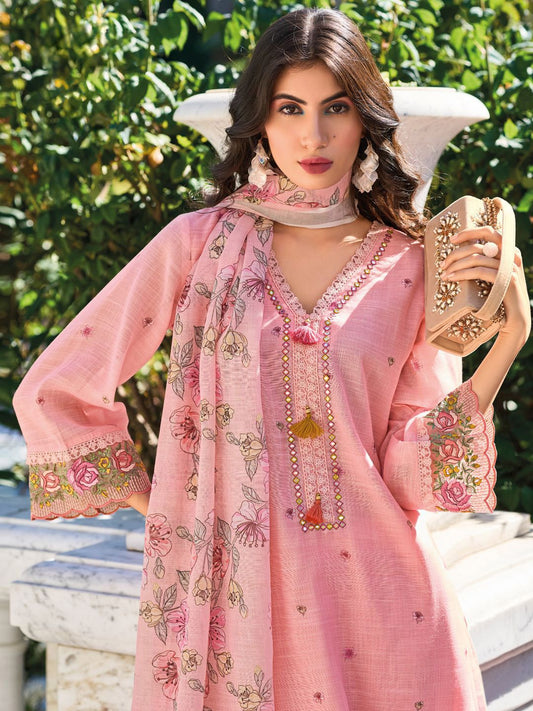Dhiyona IE Women Floral Embroidered Thread Work Linen Kurta with Trousers & With Dupatta