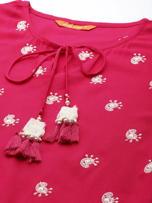 Dhiyona IE Women Pink Ethnic Motifs Embroidered Sequinned Kurta with Trousers & With Dupatta