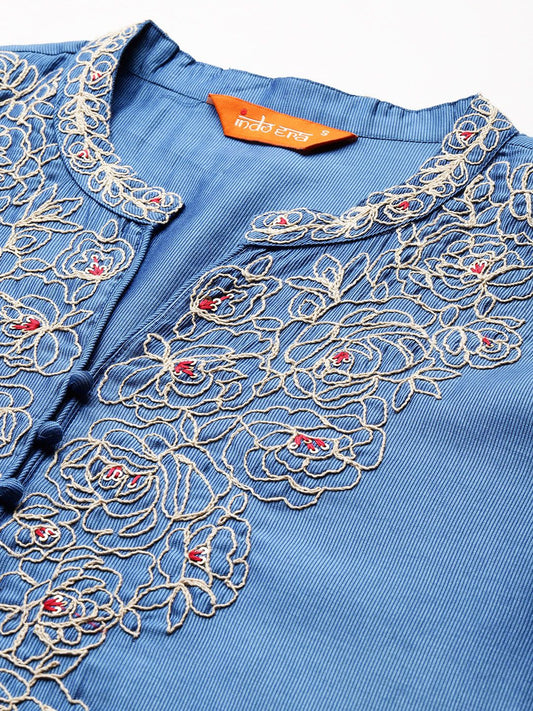Dhiyona IE Round Neck Floral Embroidered Regular Thread Work Kurta Set