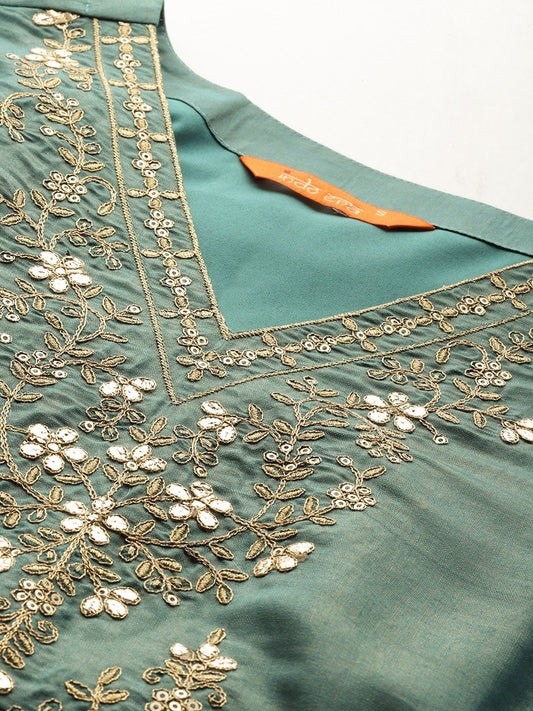 Dhiyona IE Women Ethnic Motifs Embroidered Regular Sequinned Kurta with Trousers & With Dupatta