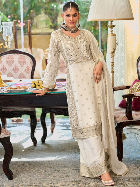 Buy 2 Get 1 FreeVendor:Dhiyona IEDhiyona IE Floral Embroidered Sequinned Chinon Straight Kurta With Palazzos & Dupatta