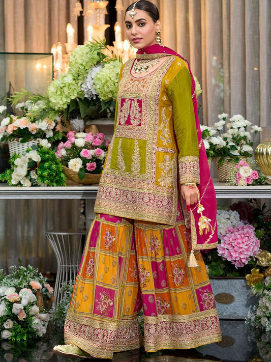 Dhiyona IE Embroidered Sequinned Kurti With Sharara & Dupatta