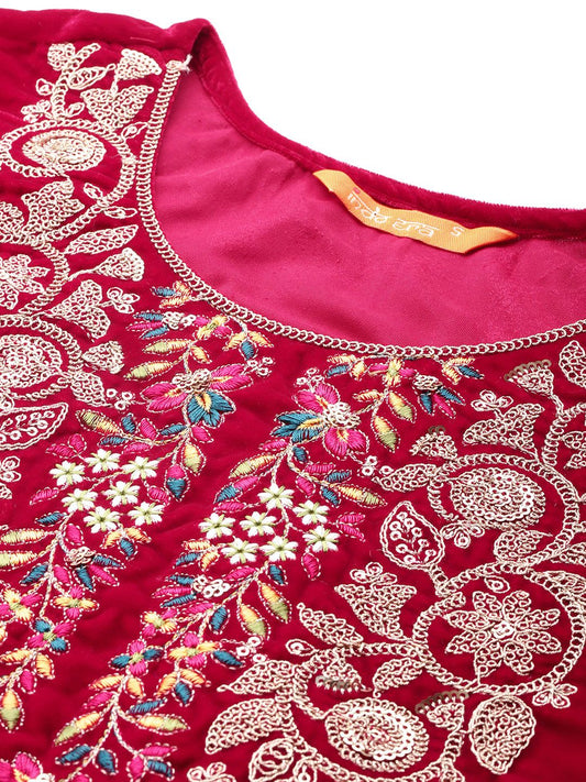 Dhiyona IE Ethnic Motifs Embroidered Velvet Kurta with Trousers & With Dupatta