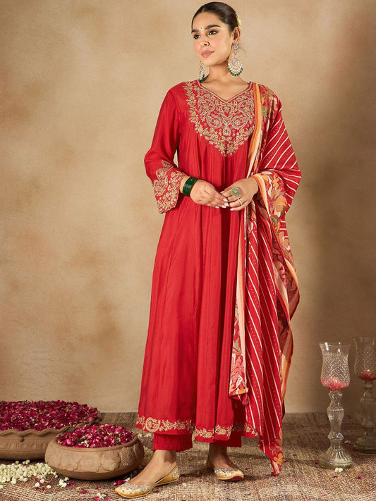 Dhiyona IE Women Ethnic Motifs Embroidered Empire Kurta with Trousers & Dupatta