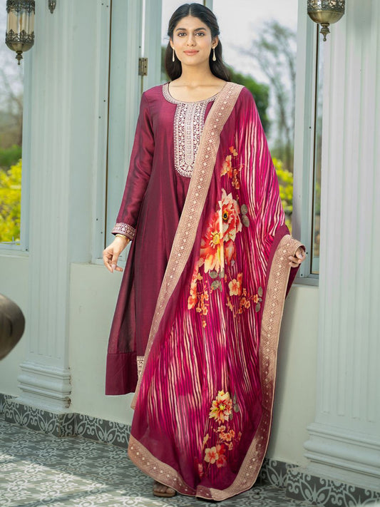 Dhiyona IE Floral Embroidered Thread Work Kurta With Palazzos & Dupatta