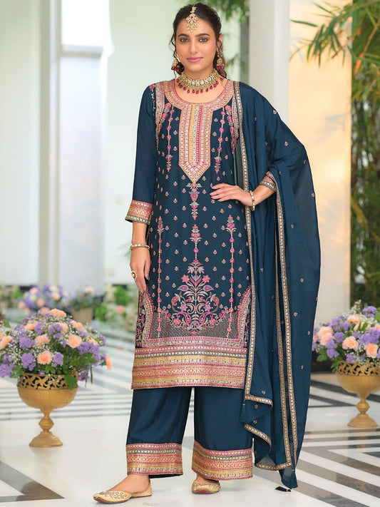Buy 2 Get 1 FreeVendor:Dhiyona IEDhiyona IE Ethnic Motifs Embroidered Sequinned Kurta With Palazzos & Dupatta