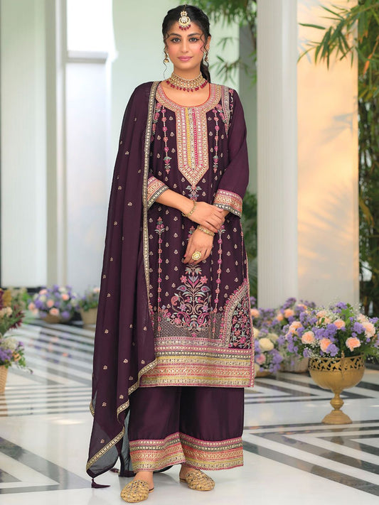 Dhiyona IE Purple Ethnic Motifs Zari Embroidered Kurta with Trousers & With Dupatta