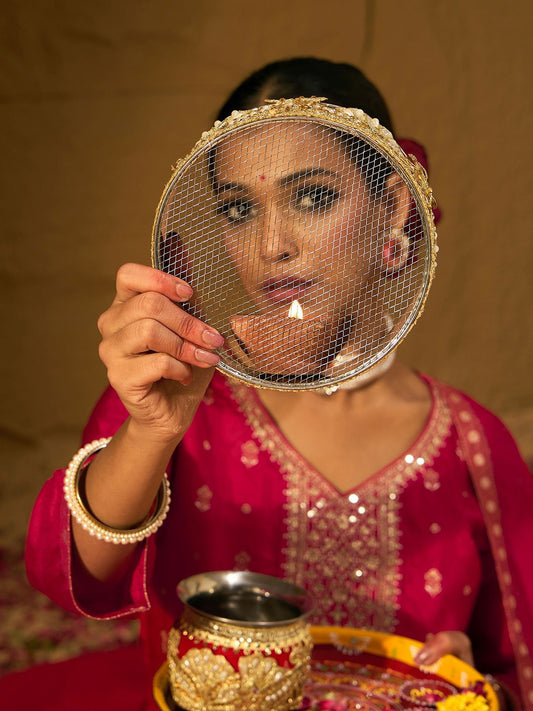 Dhiyona IE Women Ethnic Motifs Embroidered Regular Gotta Patti Kurta with Trousers & With Dupatta