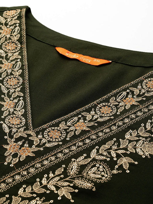 Dhiyona IE Women Green Ethnic Motifs Embroidered Kurta with Trousers
