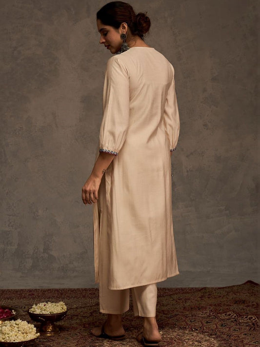 Dhiyona IE Women Ethnic Motifs Embroidered Panelled Thread Work Liva Kurta with Trousers