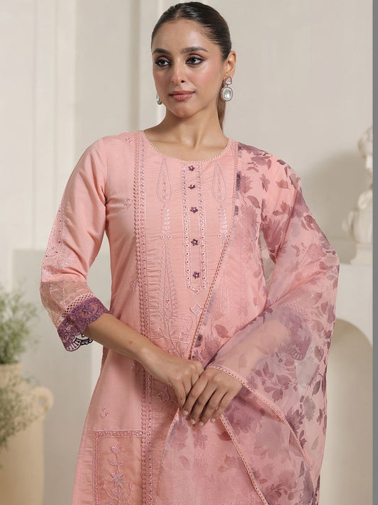 Dhiyona IE Floral Embroidered V-Neck Regular Straight Kurta With Trousers & Dupatta
